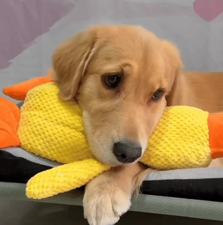 När hunden biter hörs ett kvack-ljud som väcker nyfikenhet och gör att hunden gärna fortsätter leka, bära runt och ha den nära. Det ger hunden något tryggt att fokusera på, vilket kan minska rastlöshet och stress även när den är ensam.